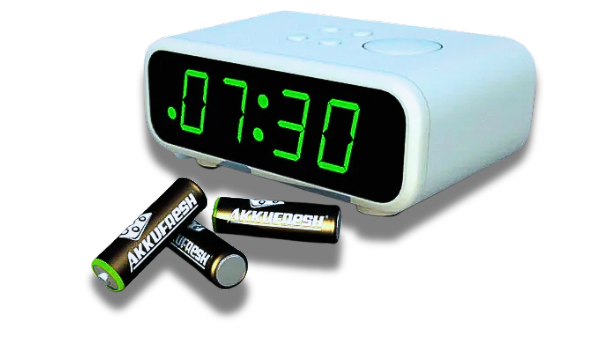 - Use an alarm or wall clock with a battery that has recently been discharged (rechargeable or AA/AAA Li-Ion battery).